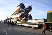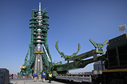 Expedition 64 Space Station Crew Prepares for Launch as Soyuz Rolls to the Pad