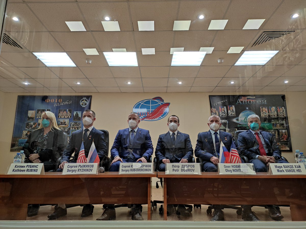 В составе основного экипажа: командир Сергей Рыжиков (Роскосмос), бортинженер-1 Сергей Кудь-Сверчков (Роскосмос) и бортинженер-2 Кэтлин Рубинс (НАСА). В составе дублирующего – космонавты Роскосмоса Олег Новицкий, Петр Дубров и астронавт НАСА Марк Ванде Хай. После заседания Государственной комиссии на 17-й площадке состоялась предстартовая онлайн-видеоконференция основного и дублирующего экипажей ТПК «Союз МС-17».