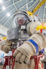 «Оператор после включения автоматической системы терморегулирования выполняет упражнения, а система сама подстраивается под уровень его энерготрат, –  отметила Е. Киреева – Система определяет, сколько тепла выделяет космонавт и поддерживает соответствующий уровень охлаждения в скафандре».