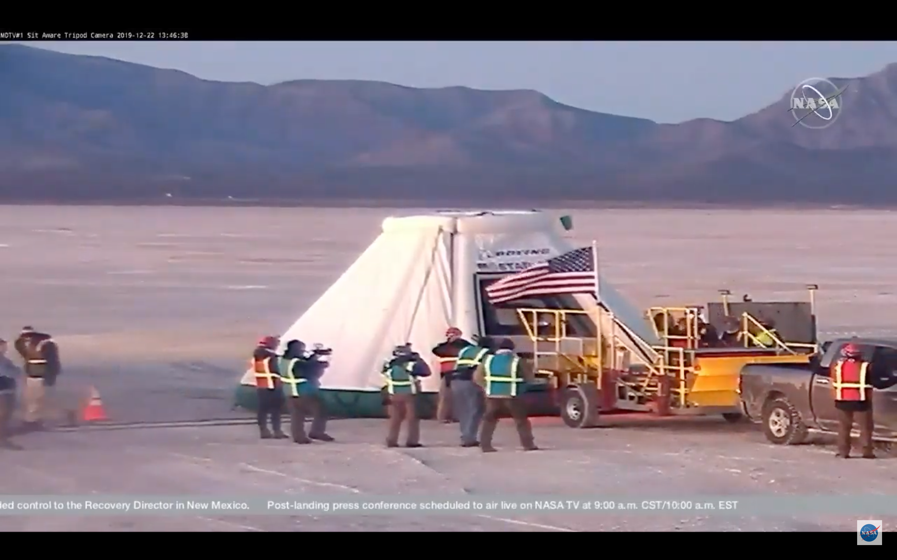 Boeing has placed an environmental enclosure around the Starliner spaceraft to help protect it from the freezing temperatures this morning at White Sands, New Mexico.