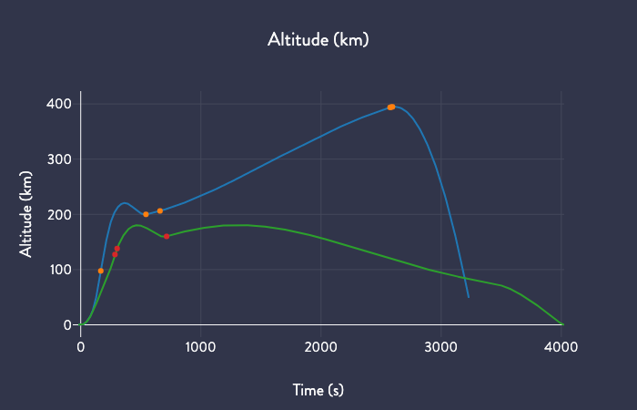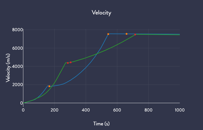 There are a _lot_ of differences between DM-1 (blue) and OFT (green). Falcon 9 and Atlas V are just such drastically different vehicles. Check out the velocity curve for example. Look how little the Falcon 9 S1 contributes to the payload velocity compared to Atlas V!