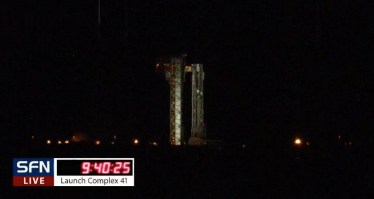 Activities are on schedule for liftoff from Space Launch Complex-41 at 6:36:43 a.m. EST (1136:43 UTC). The launch window is instantaneous, meaning there is only a moment in time available each day for liftoff to occur when the orbital plane of the space station passes over the pad.