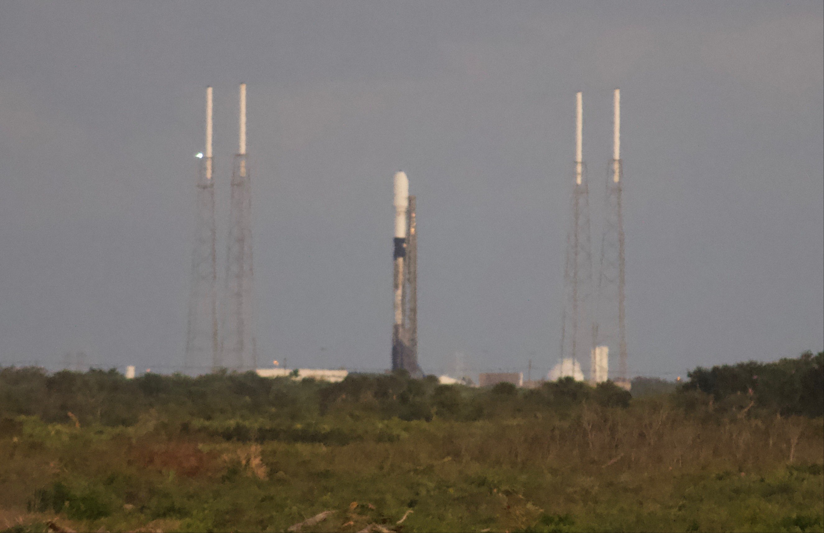 The Falcon 9 is standing tall at launch complex 40 as SpaceX prepares to launch 60 Starlink satellites in the morning.