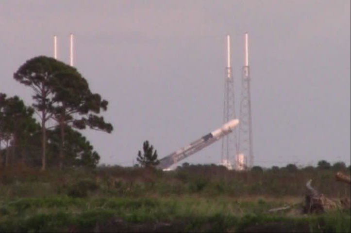 The Falcon 9 is being lifted upright at launch complex 40 in readiness for tomorrow's launch.