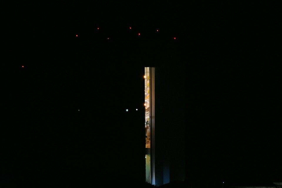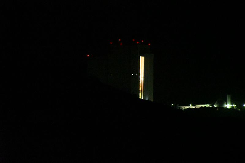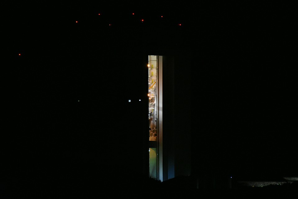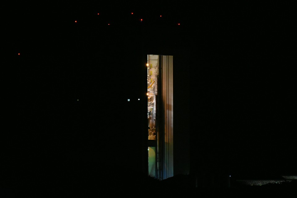 Стемнело. Створки двери VAB всё ещё закрыты. Вывоз начинается примерно через час после их открытия.... Ждём.