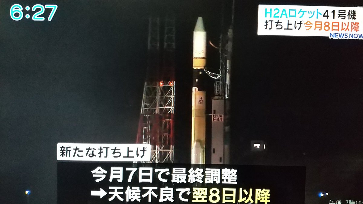 H-ⅡA41号機、7日打上げで最終調整していたが、天候悪化が予想される為8日以降に。#H2AF41