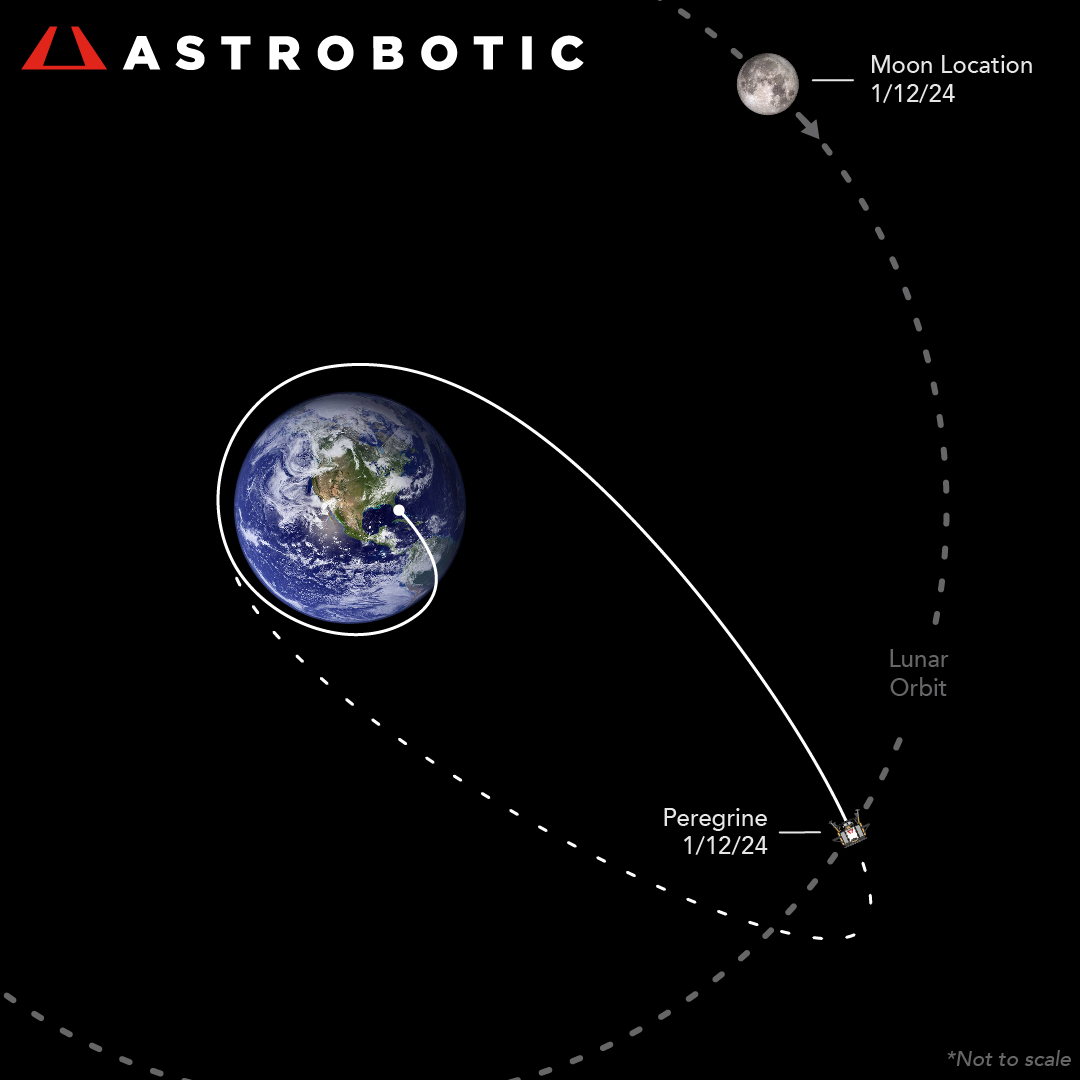 8 января с космодрома на мысе Канаверал компания United Launch Alliance запустила ракету-носитель Vulcan, которая должна была доставить к Луне груз, включая посадочный модуль Peregrine. Через несколько часов после отделения от носителя у модуля возникла неисправность. Специалисты установили, что произошла утечка топлива, которая не оставила шансов совершить мягкую посадку на Луну. Эксперты в настоящее время работают над тем, чтобы найти способ продлить срок эксплуатации Peregrine и собрать как можно больше данных, пока модуль продолжает функционировать.