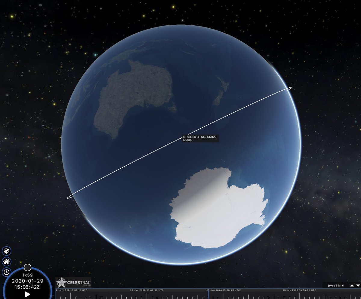 New pre-launch SupTLEs are now available on CelesTrak for the next #Starlink-4 launch attempt on Jan 29 at 1406 UTC. With no other launches expected before then, we are back to using 2020-006 for the International Designator. Deployment time is set for 15:08:42.218 UTC.