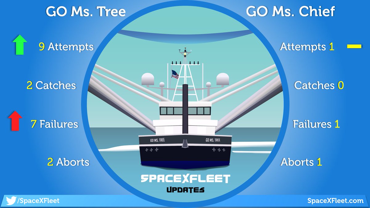 SpaceX's two fairing recovery ships -- named "Ms. Tree" and "Ms. Chief" -- are also in position in the Atlantic Ocean to try and catch the two halves of the Falcon 9's payload shroud.