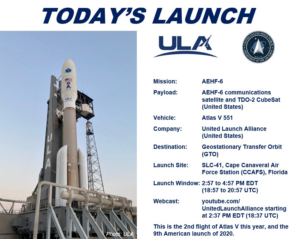 AEHF-6 – Atlas V 551 (AV-086) – Canaveral SLC-41 – 26.03.2020 20:18 UTC