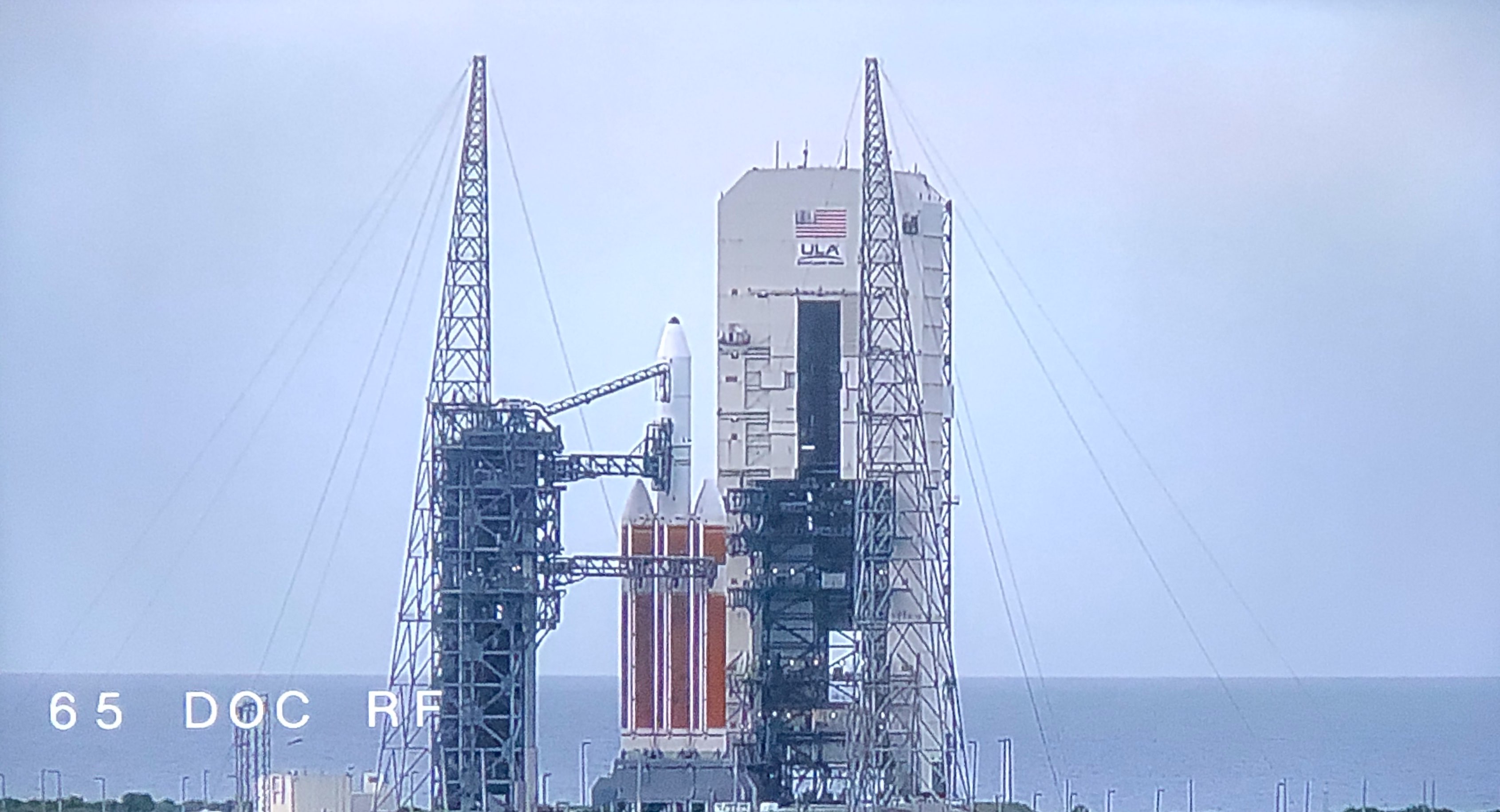 Launch Weather Officer Will Ulrich from the Space Force's 45th Weather Squadron also reports that the weather outlook remains favorable for the flight of Delta IV Heavy this evening. The forecast calls for an 80 percent chance of allowable liftoff conditions, with the only possible concerns being cloud thickness and cumulus clouds.