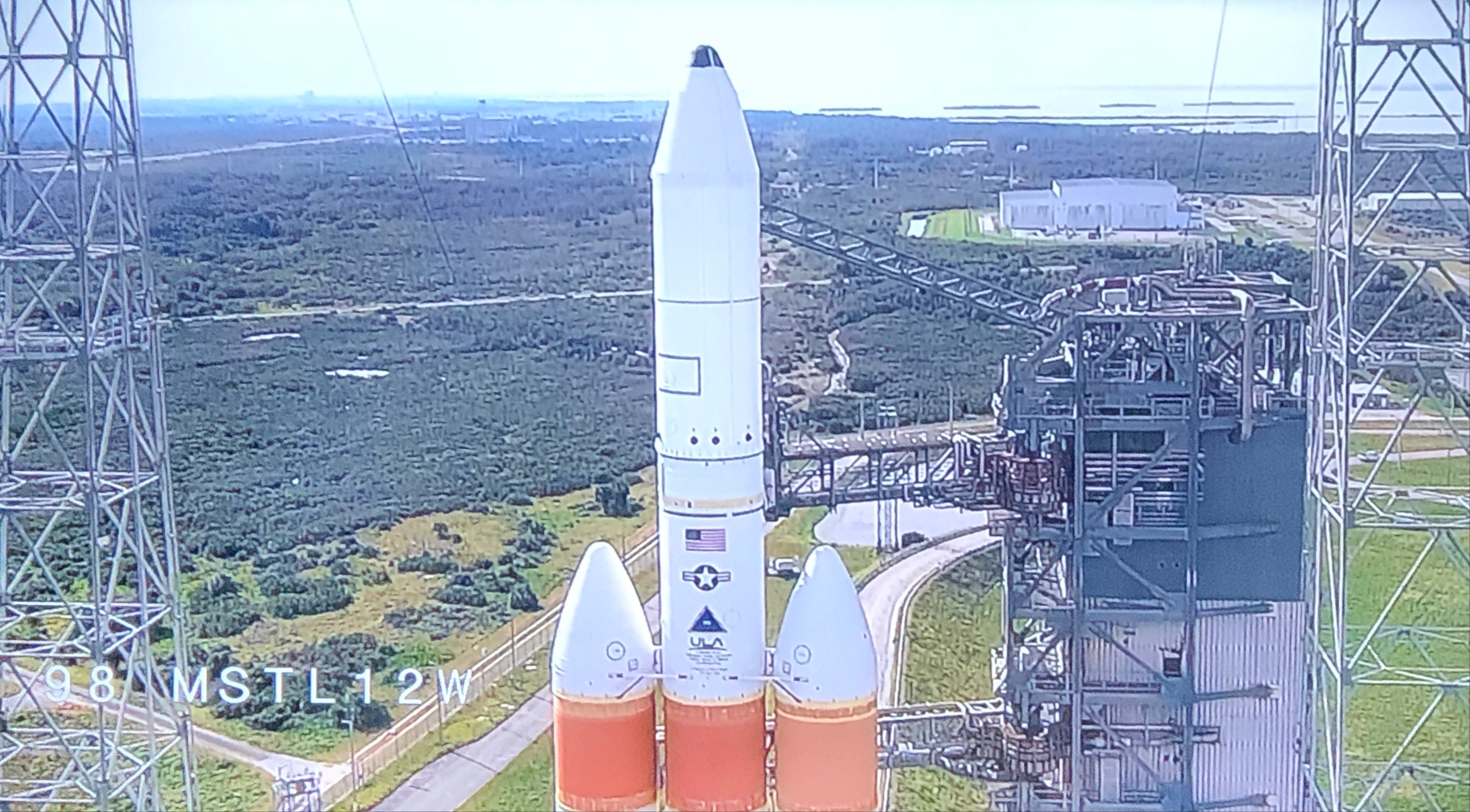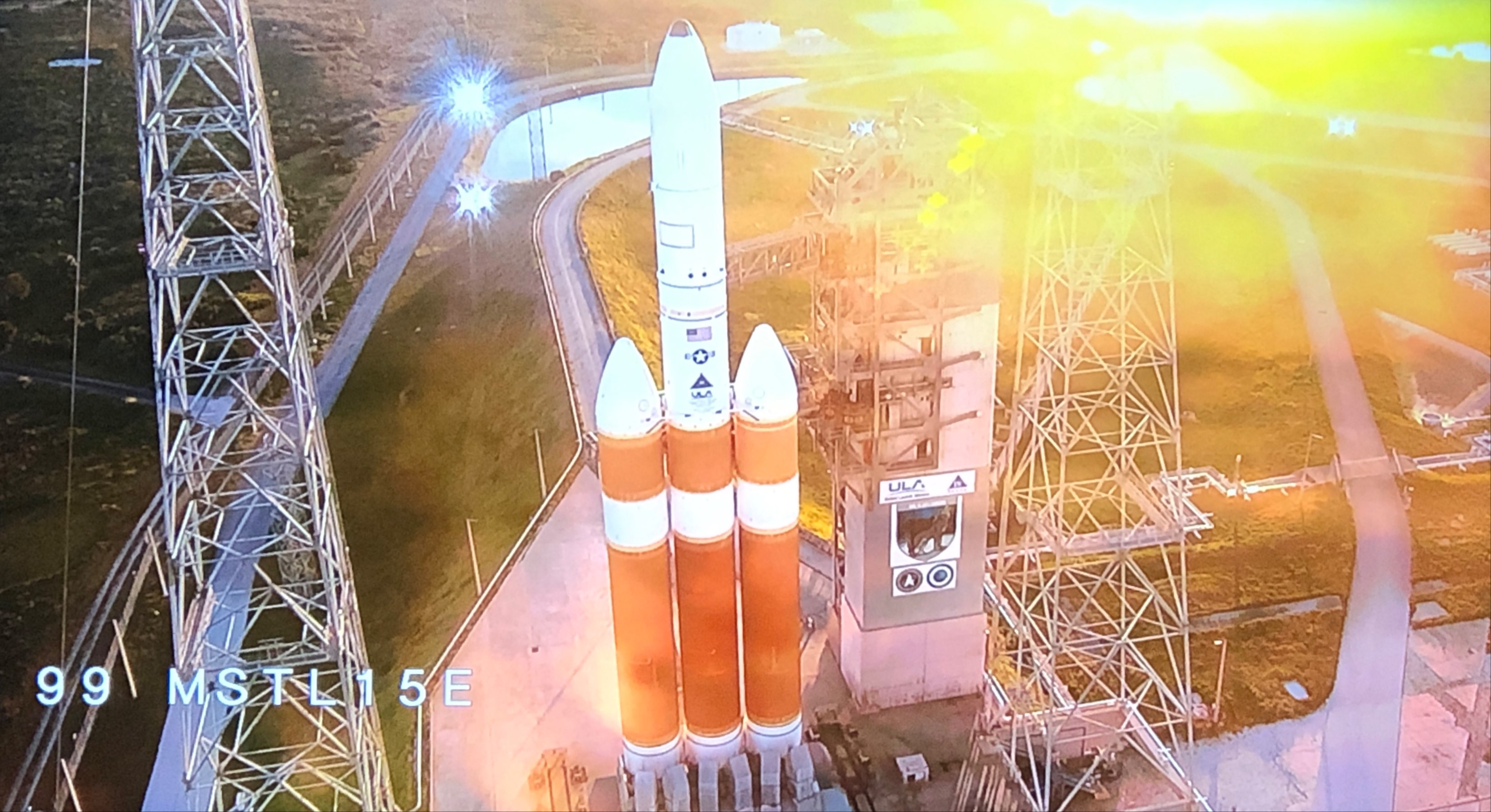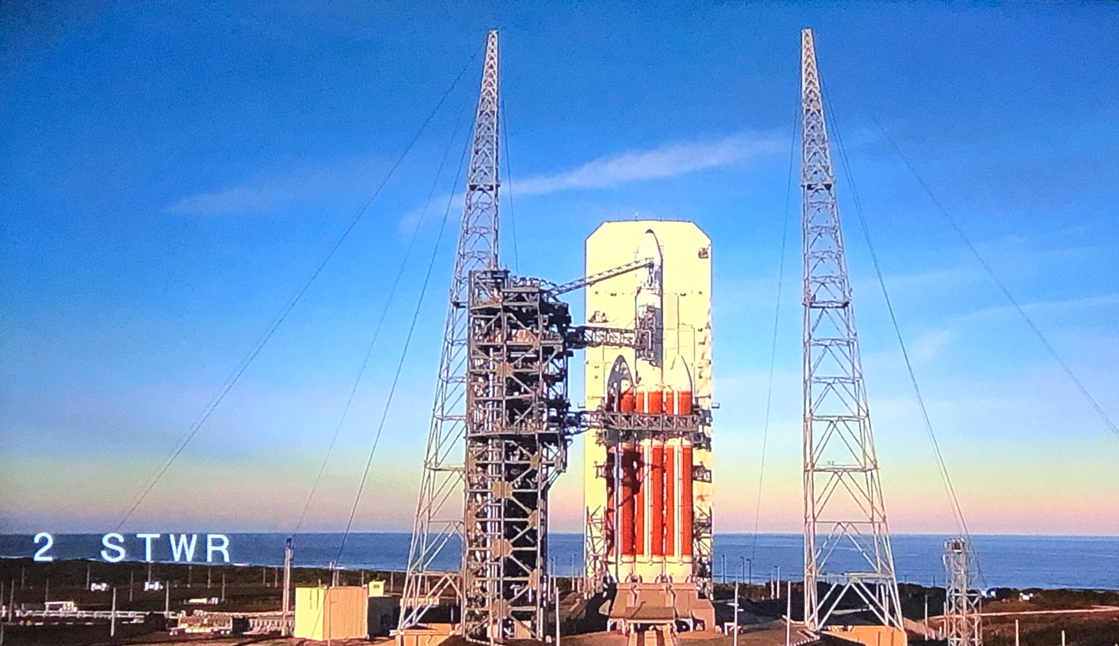 We are exactly one hour away from liftoff time of the Delta IV Heavy rocket carrying a national security payload designed, built and operated by the National Reconnaissance Office.