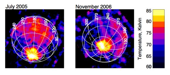 Изображения и данные VIMS показывают, что, по мере того, как Энцелад становится все менее и менее освещаем солнцем (аналогично тому, когда наша Луна приближается к фазе известной как "новая луна"), шлейф становится намного ярче. Эти данные будут весьма полезны для понимания подробной структуры шлейф и где он соединяется с поверхностью.