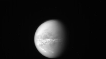 Аппарат сфотографировал яркие облака в средних широтах Титана, которые, по мнению ученых, могут являться признаком смены сезонов - наступления весны в северном его полушарии. Эти снимки были сделаны с расстояния 2,5 миллиона километров от Титана 18 октября, на одном из снимков перед спутником Сатурна видна ледяная луна Тефия.