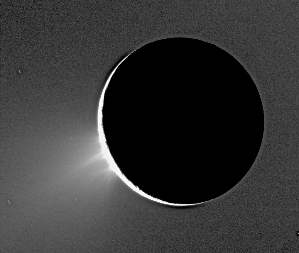 At a higher vantage point during the encounter, Cassini's high-resolution camera captured pictures of the jets emanating from the moon's south polar region. The latest raw images of Enceladus are online at: http://saturn.jpl.nasa.gov/photos/raw/ .