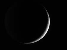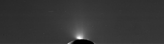 On approach to Enceladus, Cassini's cameras imaged the icy satellite's south polar plume, which consists of jets of water ice, water vapor and organic compounds sprayed into space from the moon's famed "tiger stripe" fractures. The plume images were captured at distances ranging from 259,000 miles (416,000 kilometers) down to 66,000 miles (106,000 kilometers) when Enceladus was just a thin crescent and the plume was backlit.