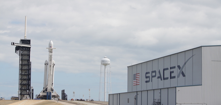 File photo of SpaceX's hangar at pad 39A, with a Falcon Heavy rocket in the background. Credit: Stephen Clark/Spaceflight Now