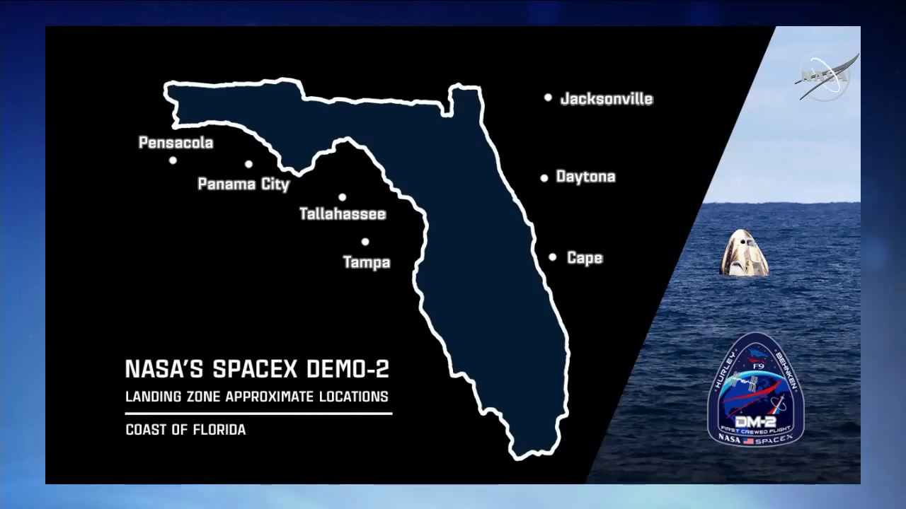 Following a comprehensive review of the latest weather forecast in the areas surrounding each of seven potential splashdown locations, NASA and SpaceX have decided to move forward with plans to bring NASA astronauts Robert Behnken and Douglas Hurley home to Earth with a splashdown off the Florida coast on Sunday, Aug. 2, aboard the SpaceX Crew Dragon "Endeavour" spacecraft.