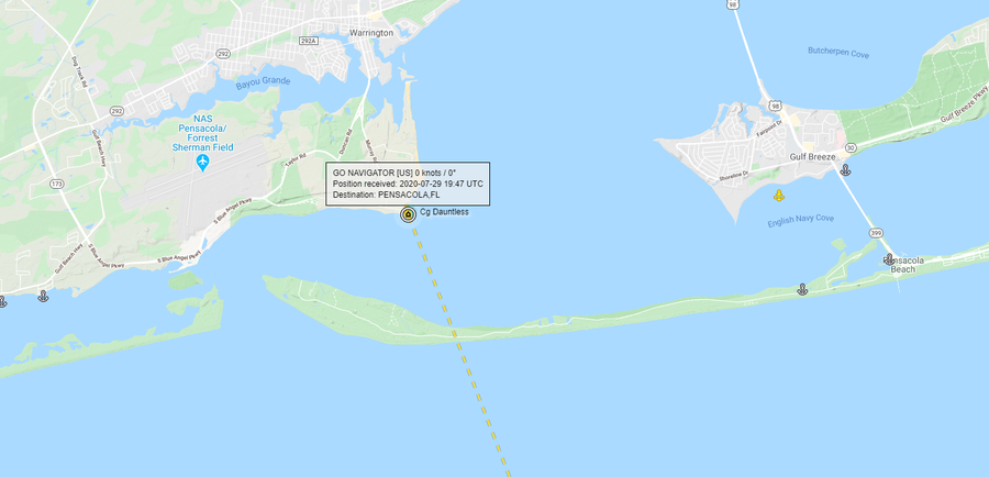 Whilst the media briefing was ongoing, Crew Dragon recovery ship GO Navigator docked at the Port of Pensacola, Florida.