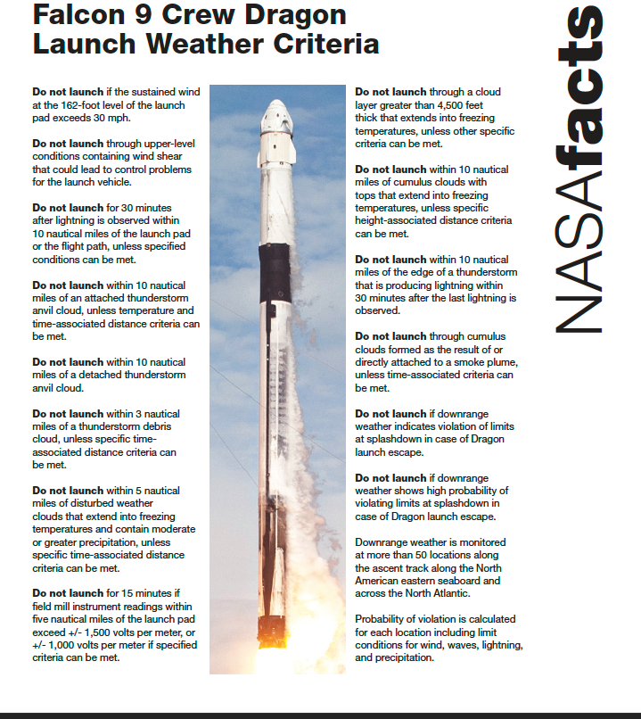 Tomorrow, NASA and SpaceX managers will conduct a flight readiness review at Kennedy to determine whether the Crew Dragon and its systems are ready for the mission. A news conference will follow at approximately 6 p.m., or one hour after the review concludes. Watch it live on NASA Television or on the web at https://www.nasa.gov/live.