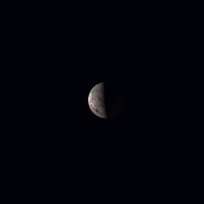 Снимок Ио с выбросом в ходе 62 пролета Юпитера в обработке Kevin M. Gill, расстояние КА Juno до Ио около 30 тыс. км..