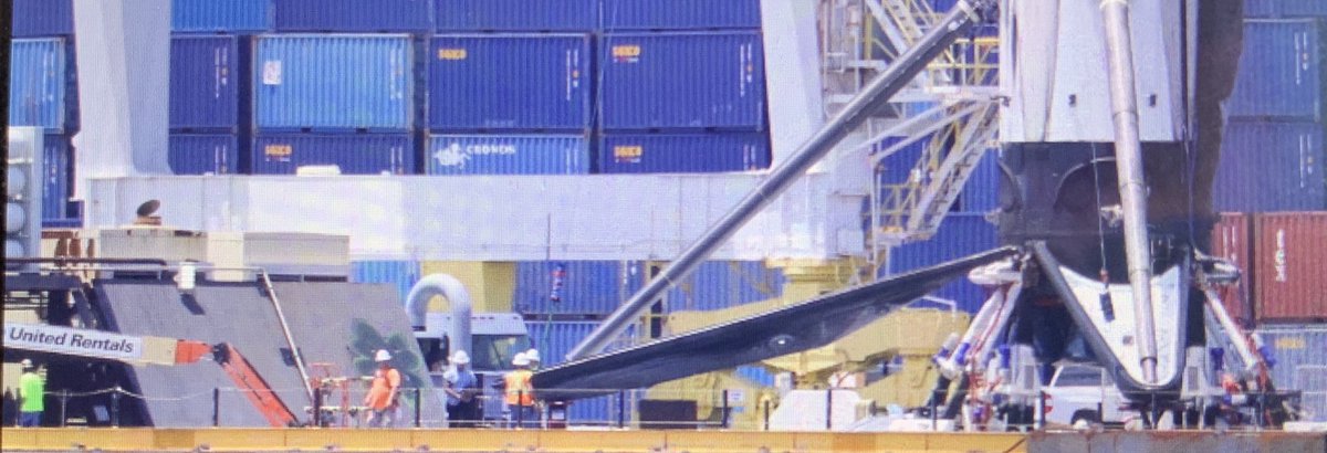 The @SpaceX fairing made their way back to @PortCanaveral and are in perfect shape it seems.
