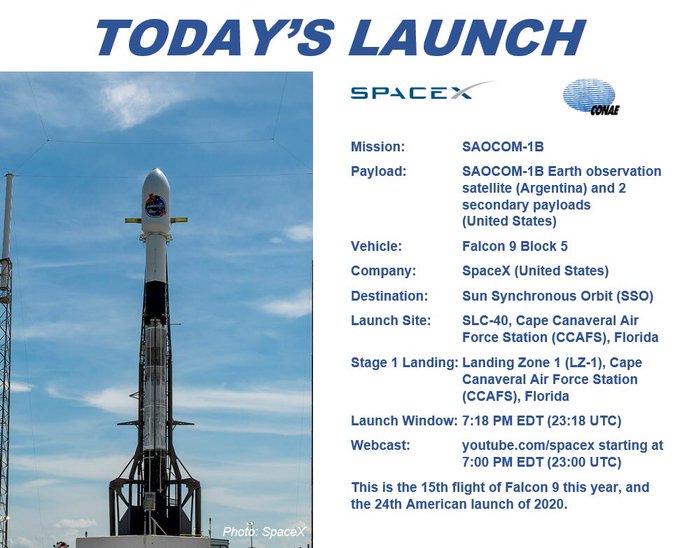 #SpaceX #SAOCOM1B Countdown NET Update: