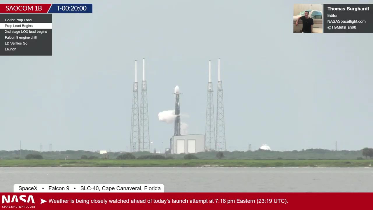 #Falcon9 will literally be threading the needle between storm cells in Florida. As of now #SpaceX teams are continuing to see all green across all weather constraints for today's launch attempt of #SAOCOM1B. https://youtu.be/P-gLOsDjE3E