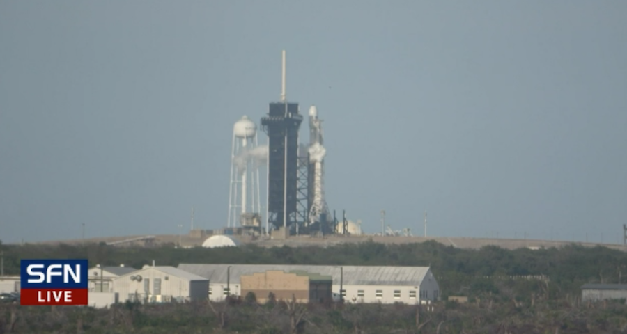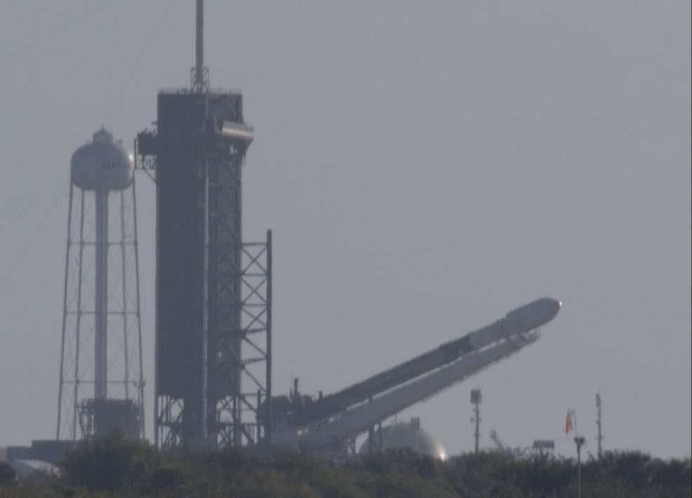 The 229-foot-tall (70-meter) Falcon 9 rocket is now standing vertical at pad 39A in preparation for a test-firing later today. The static fire window opens at 10 a.m. EDT (1400 GMT) and extends for six hours.