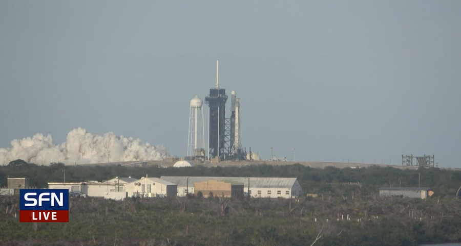 A plume of rocket exhaust over the launch pad suggests the Falcon 9 rocket's Merlin engines ignited at 6:30 p.m. EDT (2230 GMT). We'll stand by for confirmation from SpaceX of a successful test.
