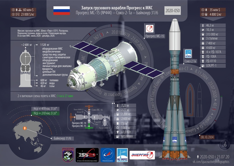 Прогресс МС-15 (№444) – Союз-2-1а – Байконур 31/6 – 23.07.2020