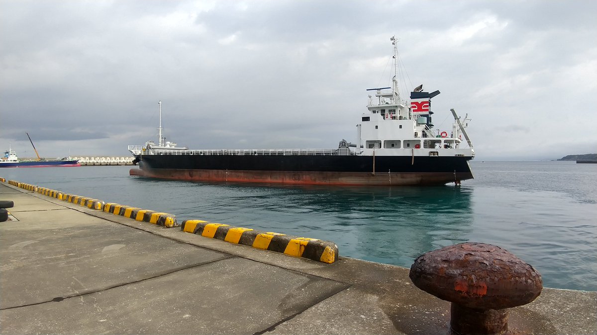 Судно Санкуин-Мару, груженое контейнером с 1-й ст РН, заходит в порт.