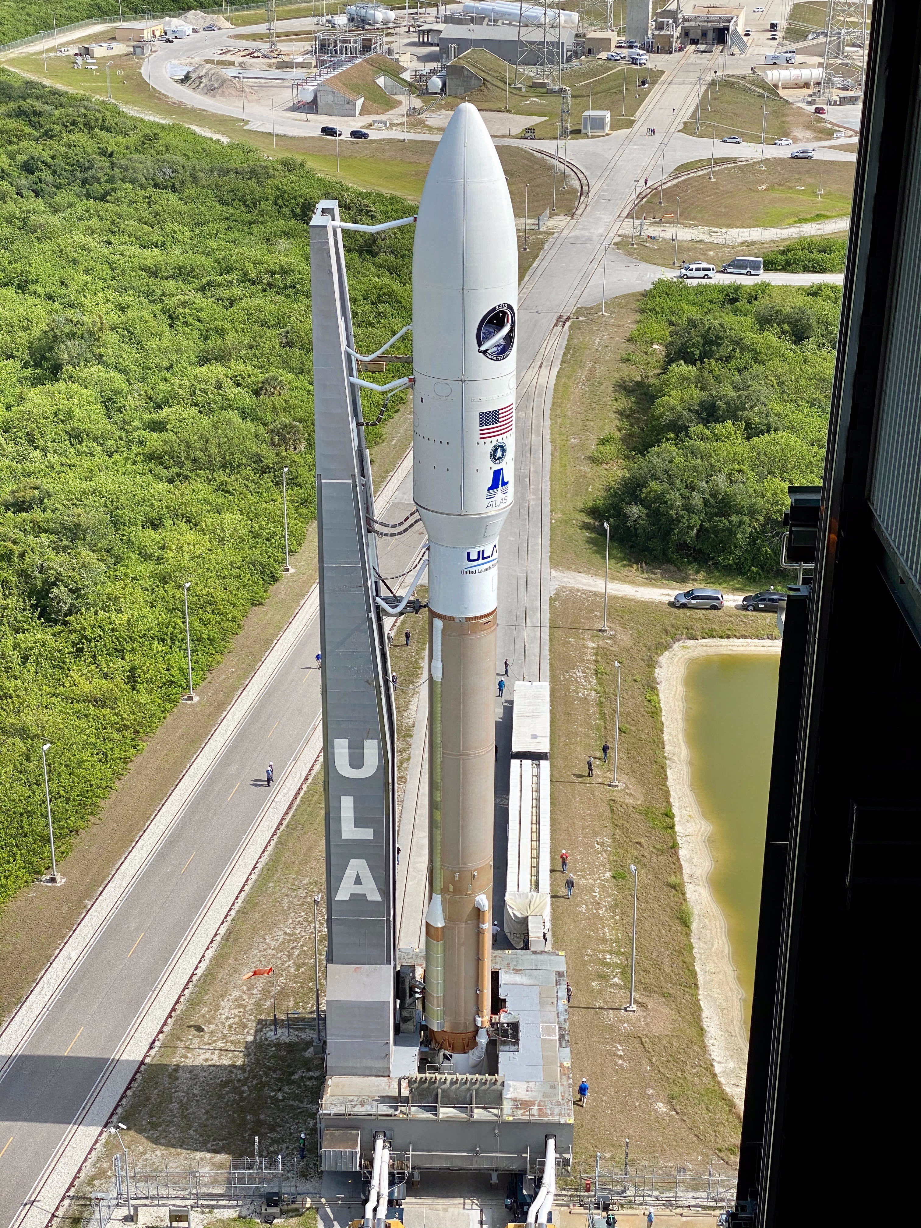 The Atlas V rocket has arrived at its Cape Canaveral launch pad for Saturday's liftoff of the United States Space Force-7 (USSF-7)mission for the Space Force's Space and Missile Systems Center.