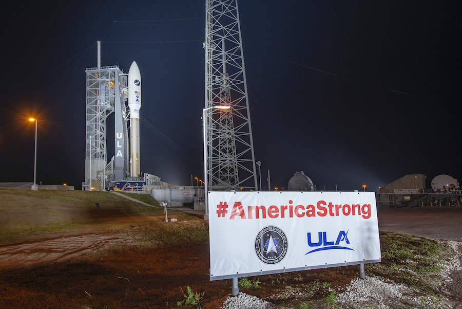 ULA, in partnership with the @SpaceForceDoD and @usairforce, is dedicating the #USSF7 launch to all those affected by #COVID19. A written dedication is affixed to the #AtlasV rocket's payload fairing #AmericaStrong