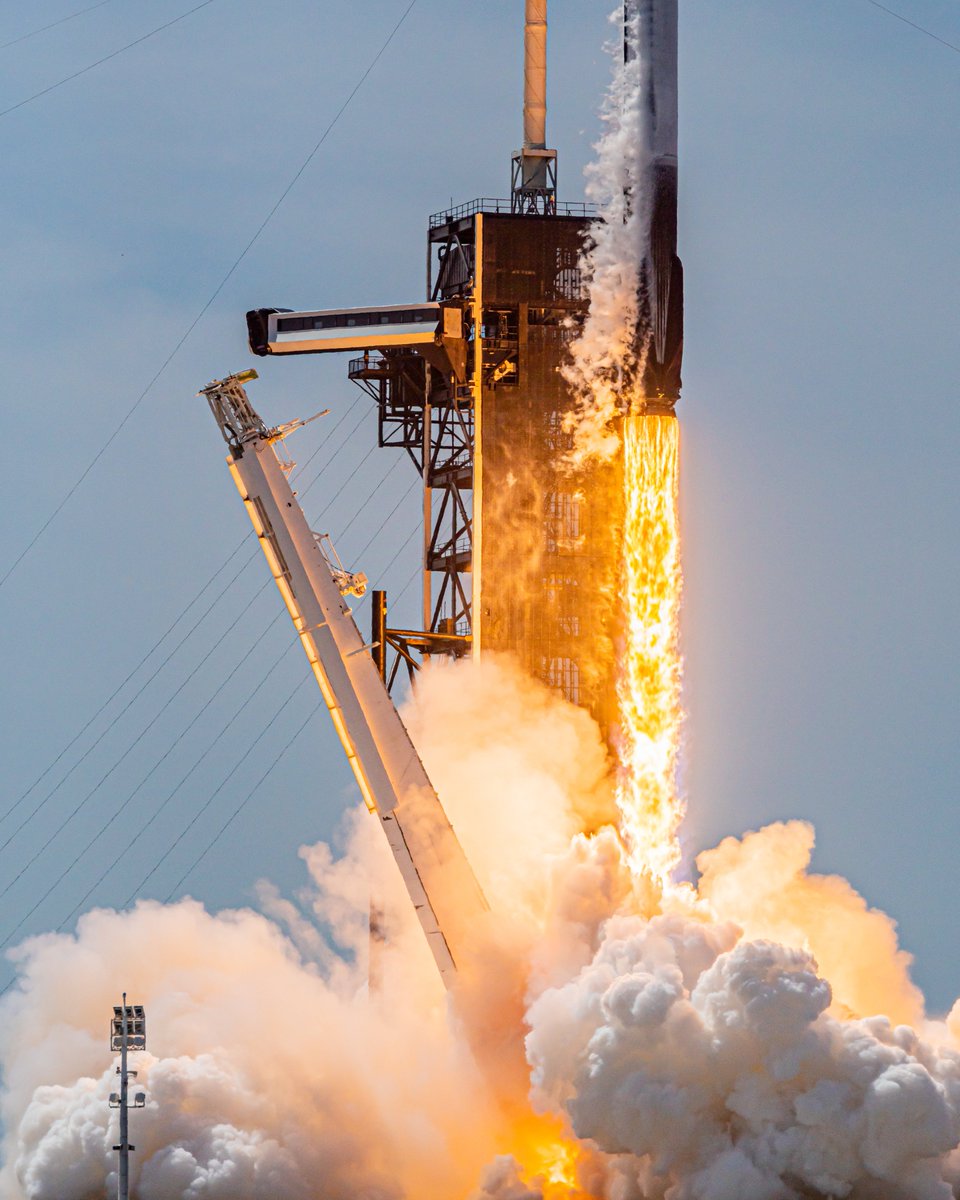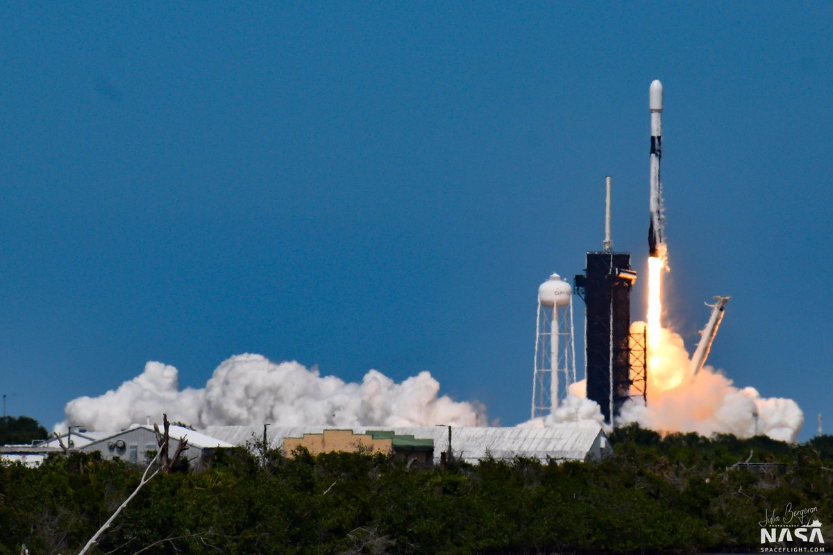 The #SpaceX Falcon 9 roars off Pad 39A at Kennedy Space Center this afternoon, firing its 9 Merlin engines