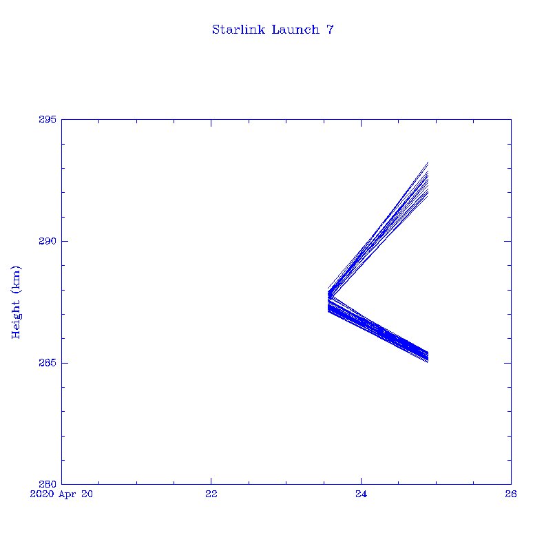 According to the SupTLEs provided via @TSKelso 20 of the Launch 7 Starlinks have begun orbit raising, while the other 40 are undergoing orbital decay (2 km so far). This is consistent with those 40 undergoing  plane precession before being boosted to other orbital planes