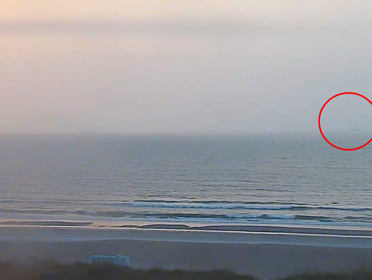 Very faint, and still far offshore... a booster has appeared on the horizon.
