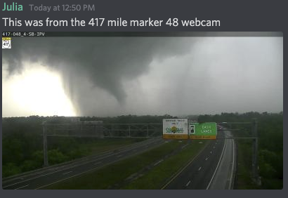 This is the tornado the attached tweet was referencing....  Seminole County FL.  North shore of Lake Jessup on State Road 417. https://twitter.com/ChrisG_NSF/status/1252261070699401216 ...