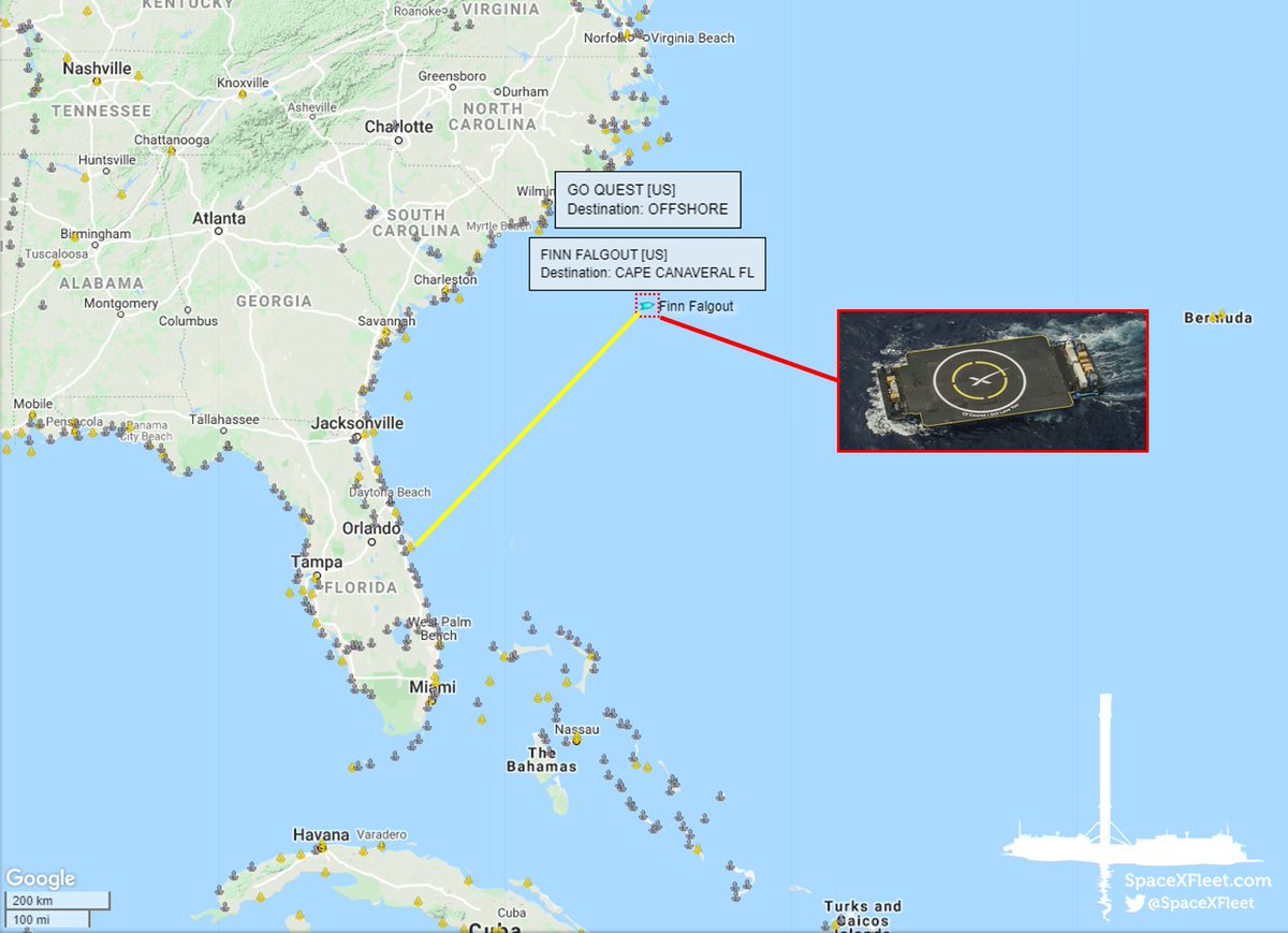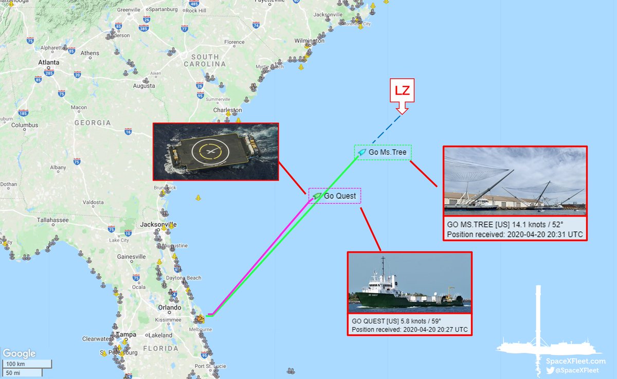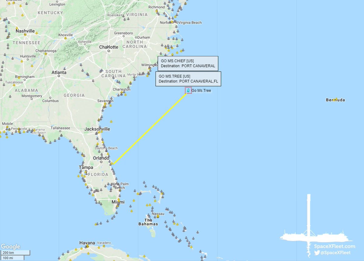 Ms. Tree and Ms. Chief have arrived at the fairing recovery zone for this week's Starlink mission! They are ~695km downrange.