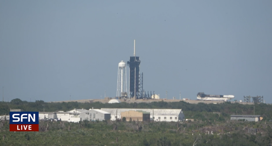 SpaceX is transferring a Falcon 9 rocket up the ramp to pad 39A this afternoon in preparation for launch tomorrow at 3:37 p.m. EDT (1937 GMT) with 60 more Starlink satellites.