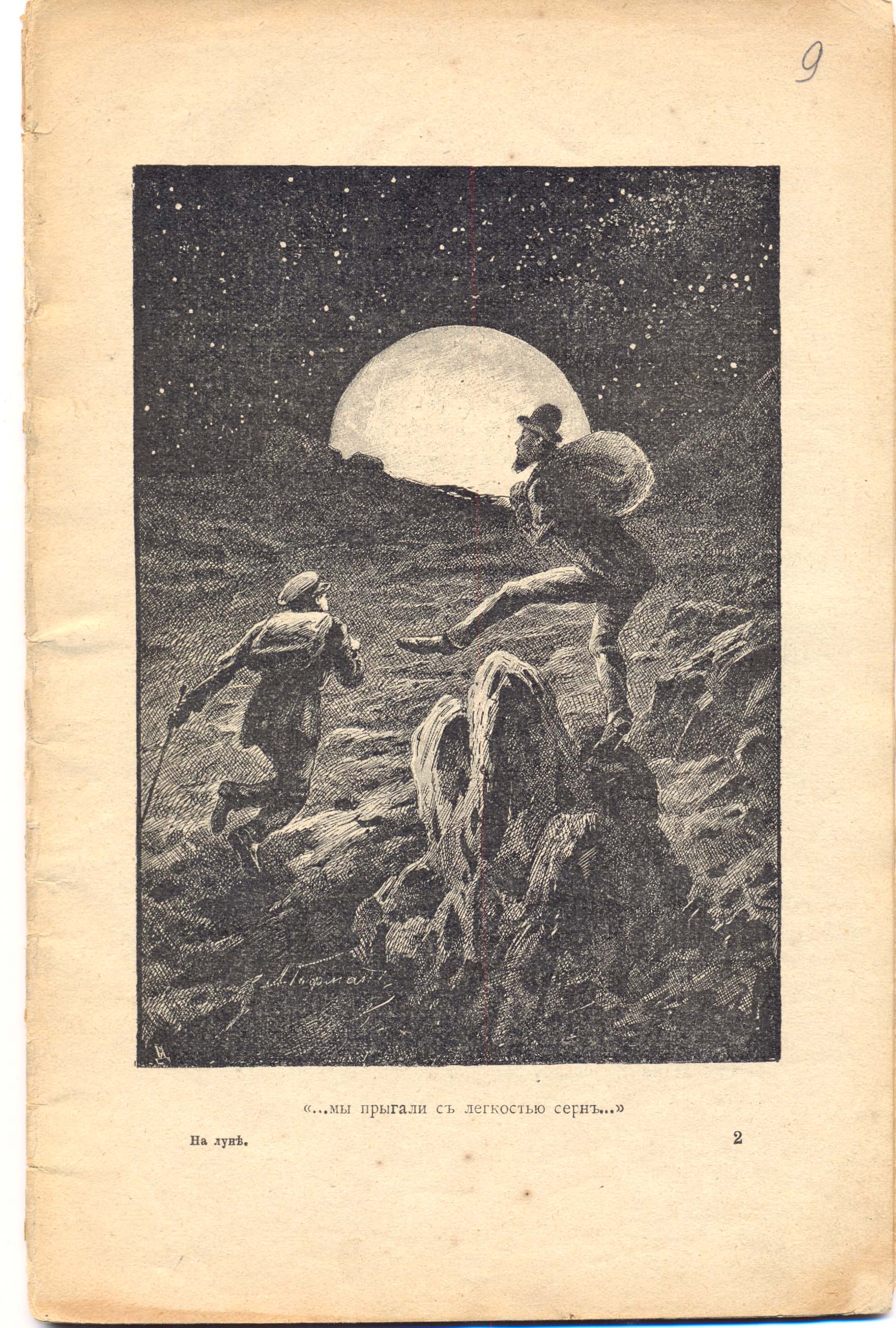«Темноватые, огромные и низкие пространства Луны принято называть морями, хотя совсем неправильно, так как там присутствие воды не обнаружено. Не найдем ли мы в этих «морях» следов воды, воздуха и органической жизни?.. Есть предположение, что всё это когда-то на ней было, если и теперь не есть где-нибудь в расщелинах и пропастях: были вода и воздух, но всосались, поглотились с течением веков ее почвой, соединившейся с ними химически; были и организмы — какая-нибудь растительность несложного порядка, какие-нибудь раковины, потому что где вода и воздух, там и плесень, а плесень — начало органической жизни, по крайней мере низшей».