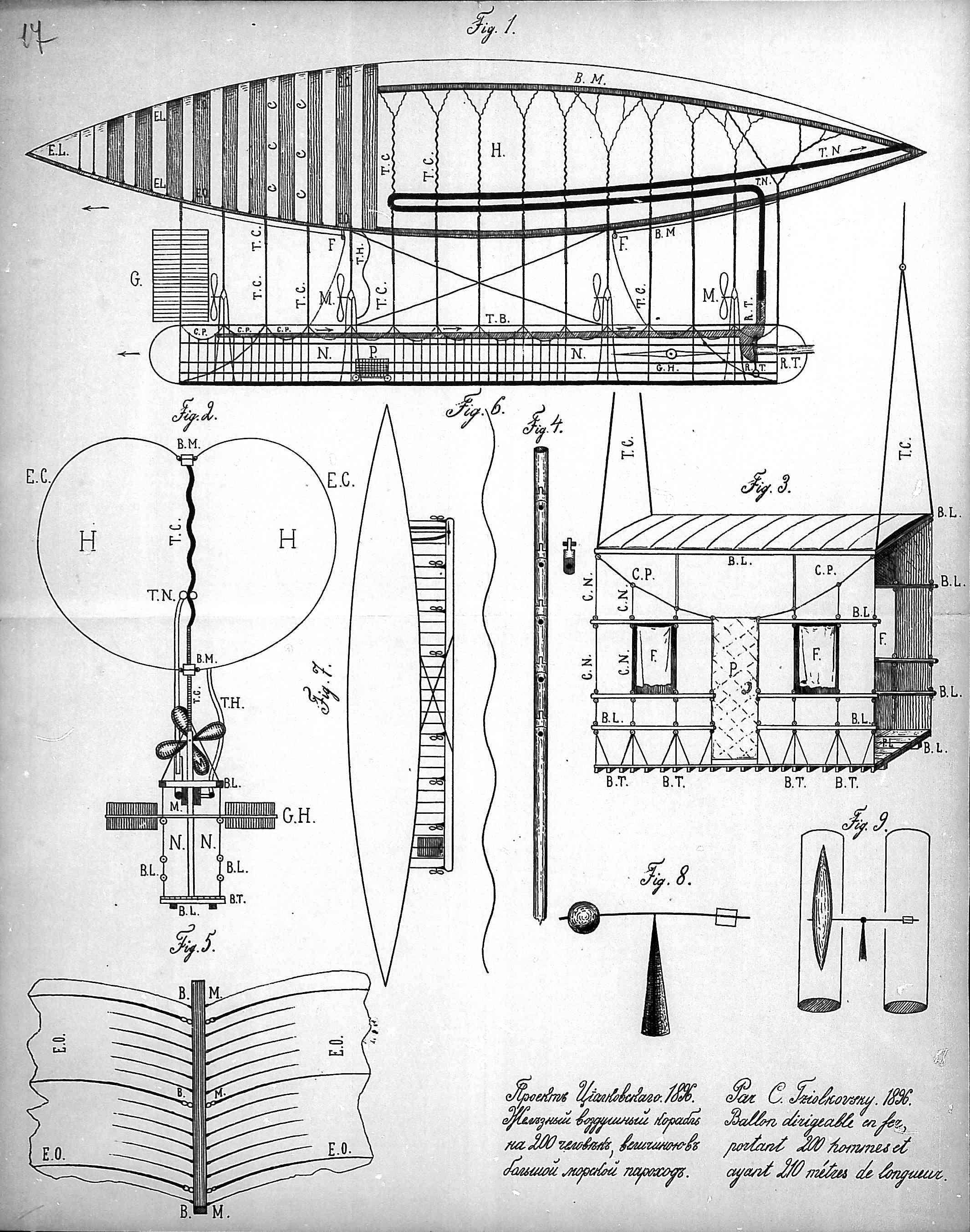 Из статьи «Построение металлического управляемого аэростата на 200 человек, длиною с большой морской пароход»: