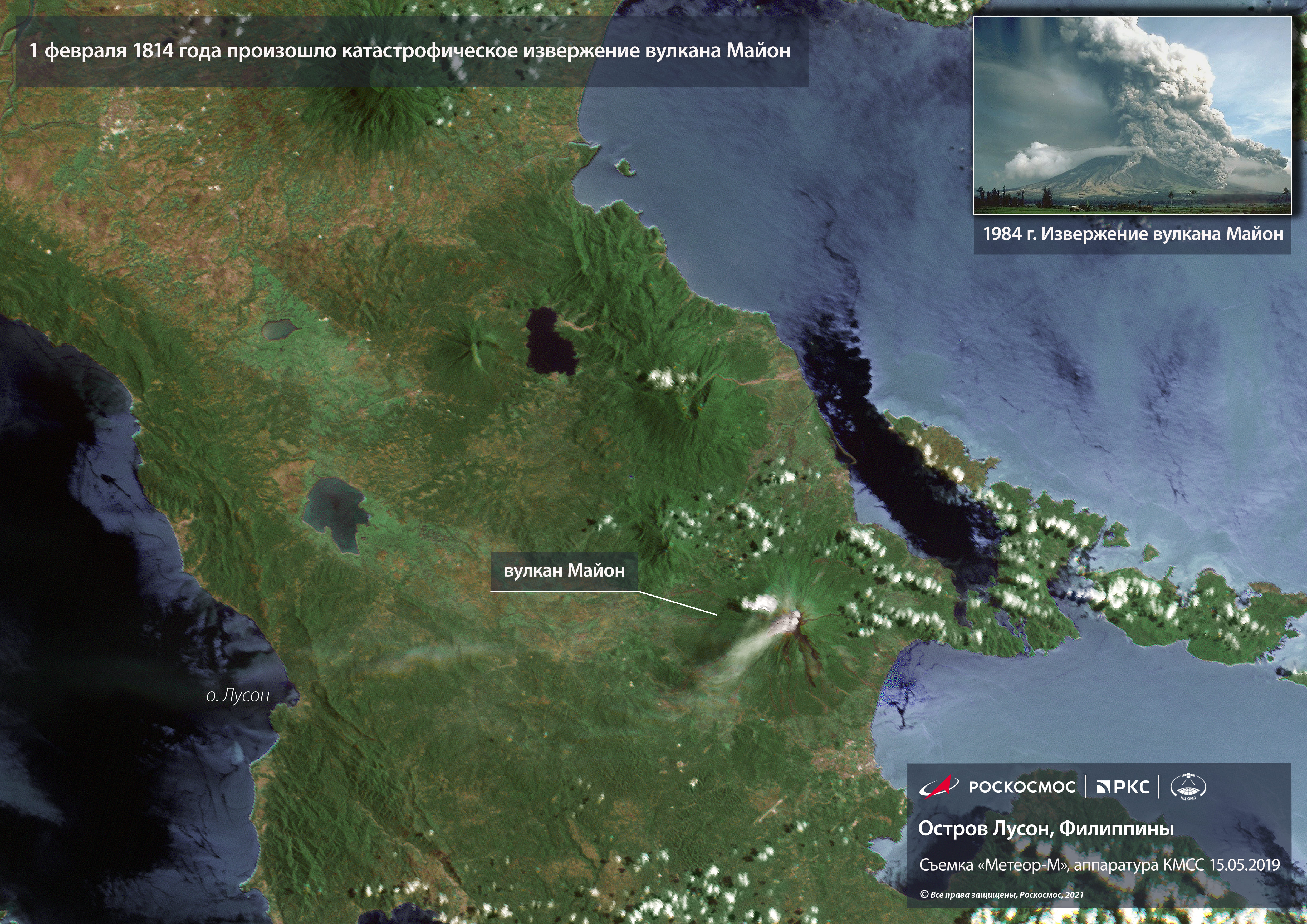 1 февраля 1814 г. — произошло катастрофическое извержение вулкана МайонФото со спутника: Метеор-М 1 февраля 1814 г. — произошло катастрофическое извержение вулкана Майон