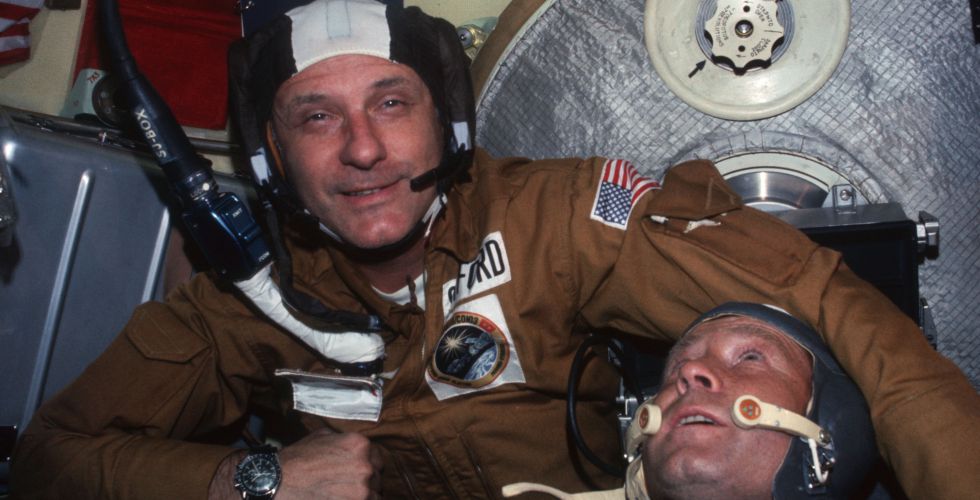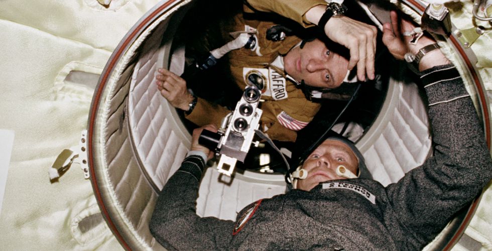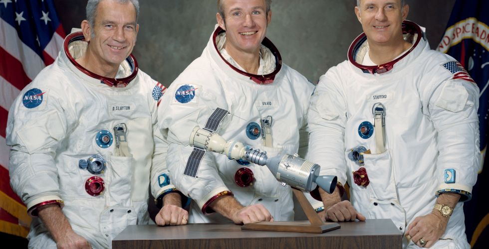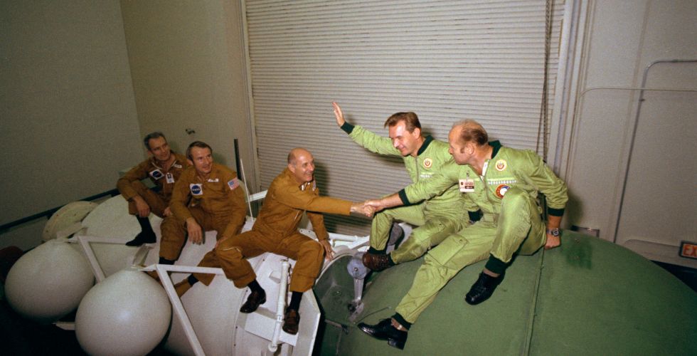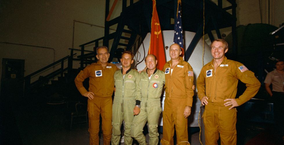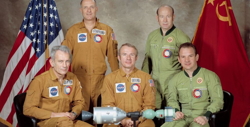 15 июля 1975 года — начало совместного экспериментального пилотируемого полета советского корабля «Союз-19» и американского «Аполлон». В экипаж корабля «Союз-19» входили космонавты Алексей Леонов и Валерий Кубасов. Участниками программы со стороны США стали Томас Стаффорд, Вэнс Бранд и Дональд Слейтон.