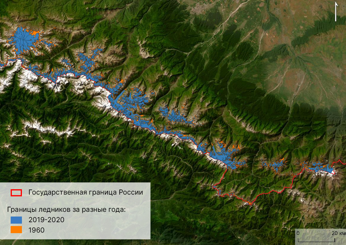 Отступание ледников Центрального Кавказа с 1960 по 2020 гг.