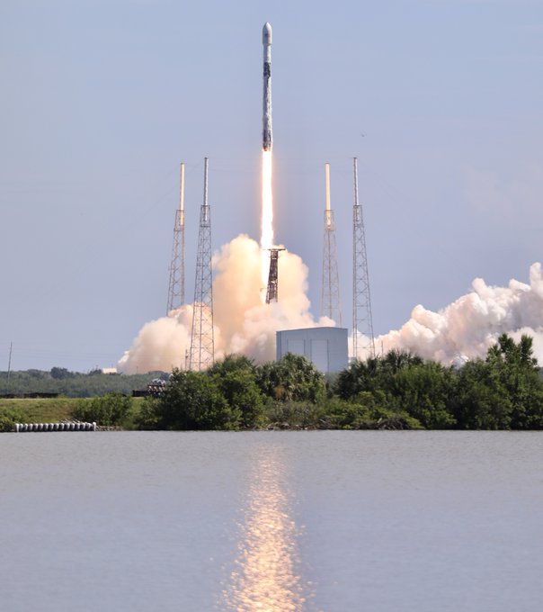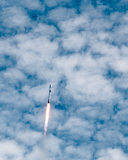 A #SpaceX Falcon 9 booster on its record-breaking sixth flight to space, delivering 58 Starlink and three SkySat satellites