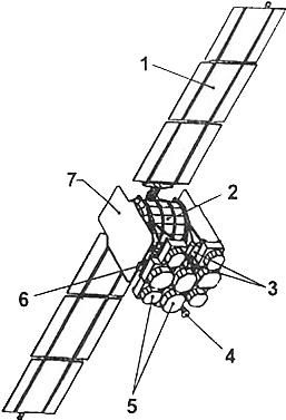 ЦитироватьНа спутнике "Купон" каждая АФАР содержит 64 конических рупора, установленных с шагом около 3 длины волны и обеспечивает электрическое сканирование луча в конусе с углом 18 град. при вершине [41]. Антенная система имеет 4 приемные (диаметр 1 м, масса 36,5 кг каждая) и 4 передающие АФАР (диаметр 1,2 м, масса 50,5 кг каждая). Каждая АФАР формируют по четыре независимых луча с шириной ДН примерно 2 град. (возможно расширение до 4 град. в любом сечении с шагом 0,5 град.). ЭИИМ от 36 дБ Вт до 50 дБ Вт в максимуме. Приемные АФАР имеют G/T =+3 дБ/K в рабочеи зоне. Перенацеливание лучеи осуществляется с дискретностью 0,1 град. за 0,1 с.