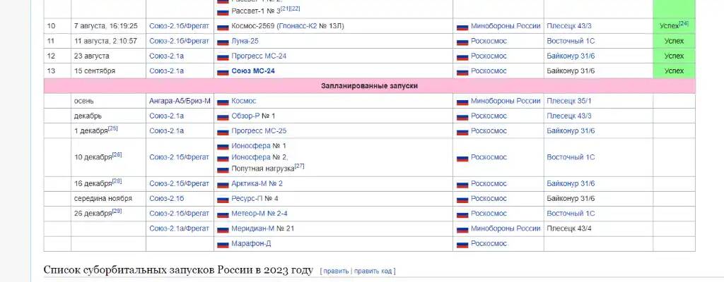 а не на скриншот смотреть, то там это раздел "Запланированные запуски " в таблице "Список орбитальных космических запусков России в 2023 году". А про суборбитальные запуски, попавшие на скриншот  - это следующий список, точнее его заготовка, поскольку он пустой. Поэтому и лучше ссылку давать, чем небрежные скриншоты. Ну и надо учитывать, что это же википедия, которая пишется кем придётся и когда придётся.