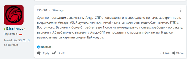 Цитата: Sаlyutman от 16.04.2022 18:23:32По поводу серьёзности "Ангары А3" пока ничего не слышал.