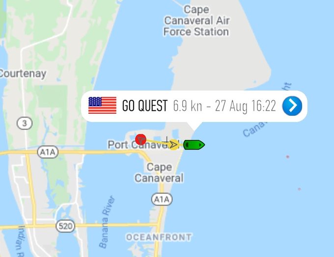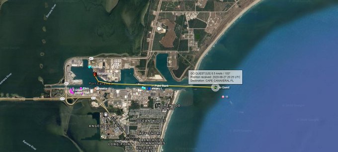 Droneship support ship GO Quest has just departed from Port Canaveral for the upcoming Starlink mission!
